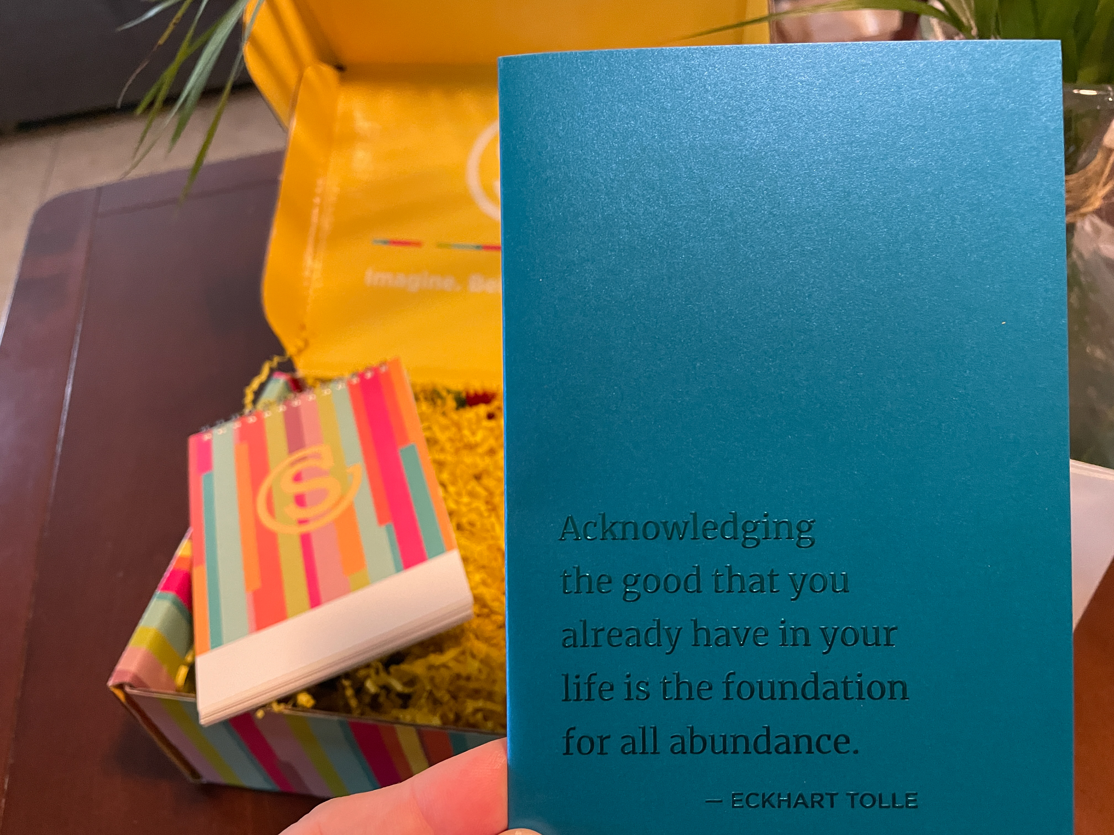 The packaging above was designed as a holiday gift for clients. Since the company I was with was a commercial printer, I had free reign to include as many features as I could imagine. The box above included a Cup O' Inspiration coffee mug and an embossed leather coaster sourced from SEP Communications. It also included two Keurig Café Bustelo coffee pods with custom labels. The notepad is Neenah Techweave and coil bound. Each notepad had the recipient's name printed on the front digitally through variable data. The holiday card was made with two Neenah papers mounted to each other after four-color digital printing, foil stamping, and embossing.